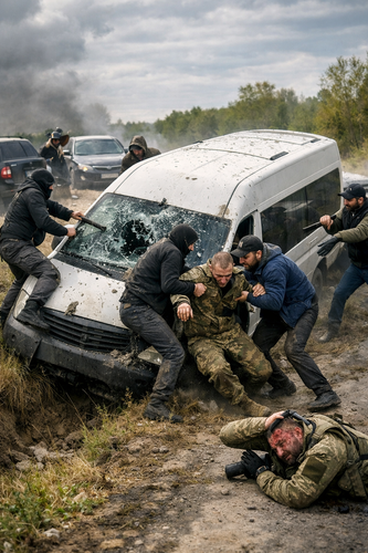 По утверждению самих сотрудников ТЦК, возле села Озеро несколько машин подрезали и полностью заблокировали служебный бус, в котором находился захваченный с целью отправки на фронт мужчина. В результате служебный транспорт оказался в кювете.